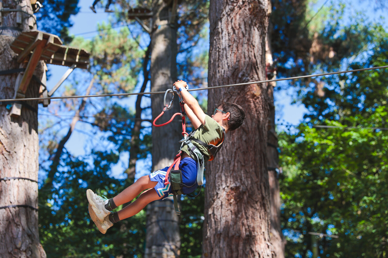 Acrobates en herbe ou aventuriers, évoluez d’arbres en arbres au fil des 17 parcours acrobatiques et des 150 ateliers, perchés entre 1 et 17m de haut. Des difficultés croissantes et 100% sécurisées grâce à la ligne de vie continue pour tous, vivez des sensations fortes en famille ou entre amis.